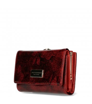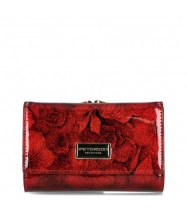 Portfel damski skórzany PETERSON czerwony kwiaty