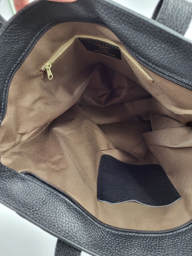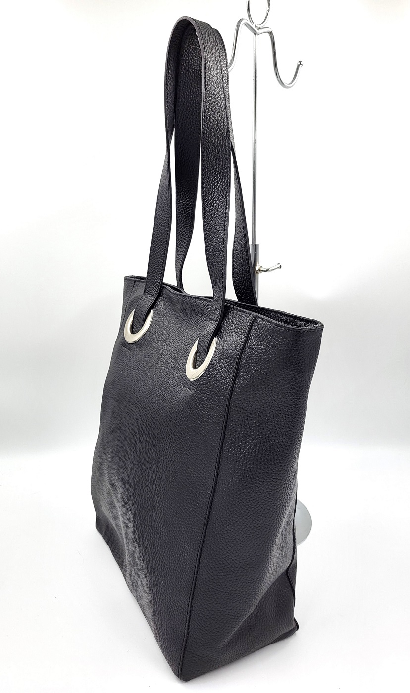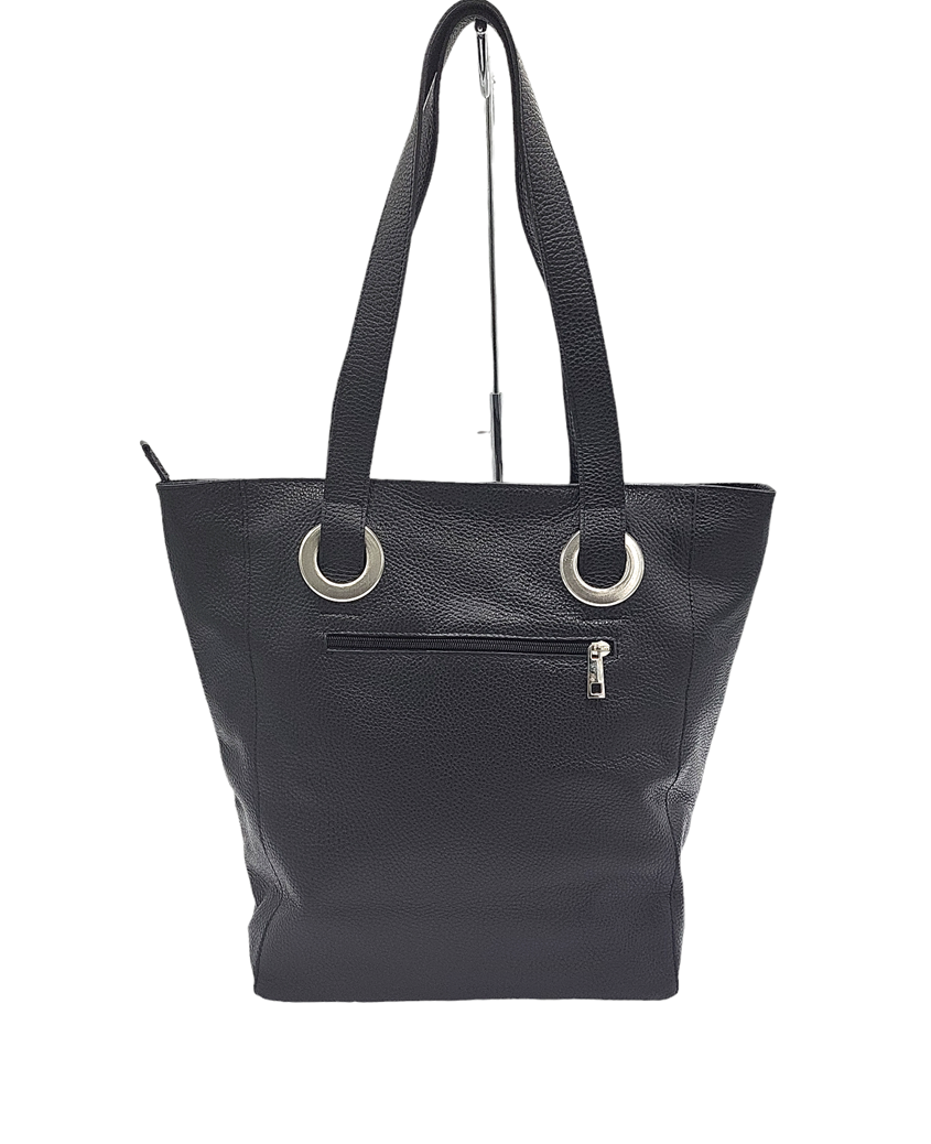 Duża torebka damska o ponadczasowej, klasycznej stylistyce. Wykonana z wysokogatunkowej skóry naturalnej w kolorze czarnym. Bardzo stylowy design, połączony z ponadprzeciętną funkcjonalnością — dedykowana dla najbardziej wymagających Kobiet, które stawiają na wygodę i lubią być przygotowane na każdą ewentualność.