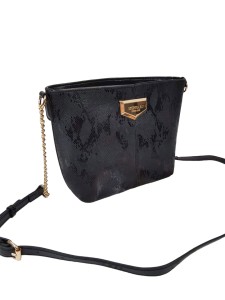 Piękna listonoszka zawieszona na długim pasku połączonym łańcuszkiem. Elementem ozdobnym jest delikatny wężowy wzór