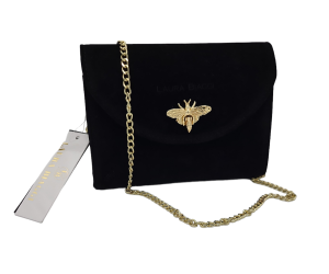 Torebka damska KOPERTÓWKA z pszczółką czarna zamsz