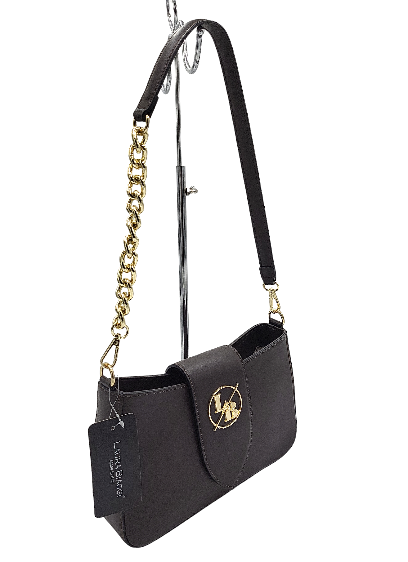 Torebka damska Laura Biaggi z łańcuszkiem skóra naturalna brąz