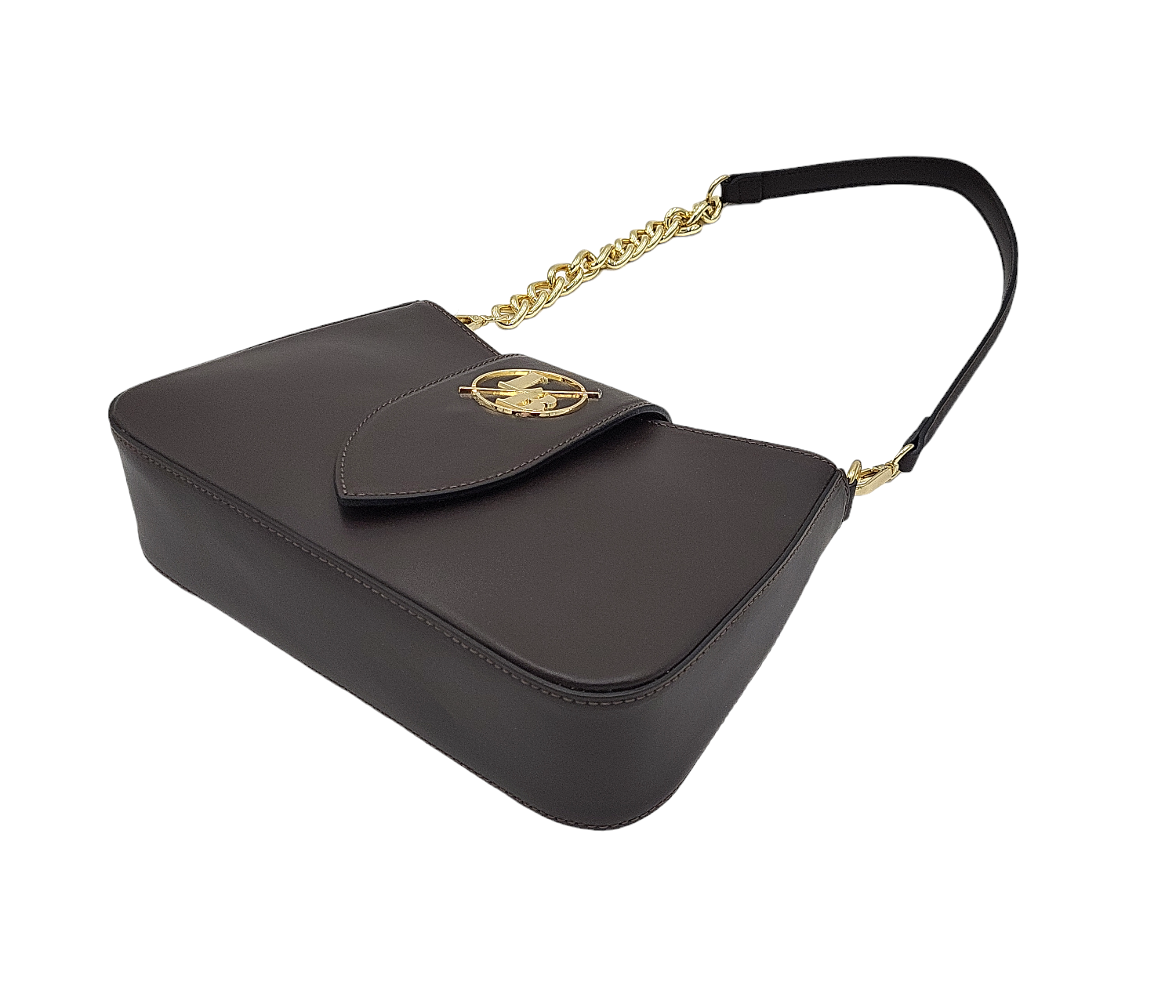 Bardzo lekki, wygodny model z klapką zamykaną na magnes. Jednokomorowe wnętrze zamykane na zamek. Wysokiej jakości podszewka z kieszonką zamykaną na suwak. Torebka mieszcząca duży portfel. Model jest usztywniony. Charakteru całości dodają złote okucia.