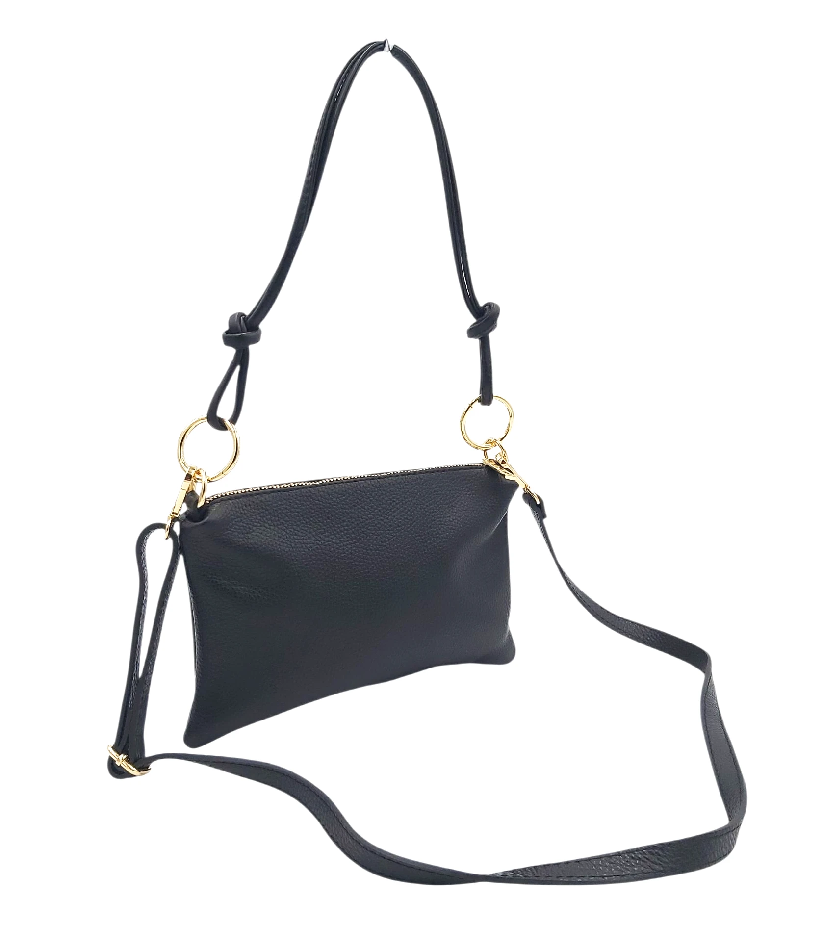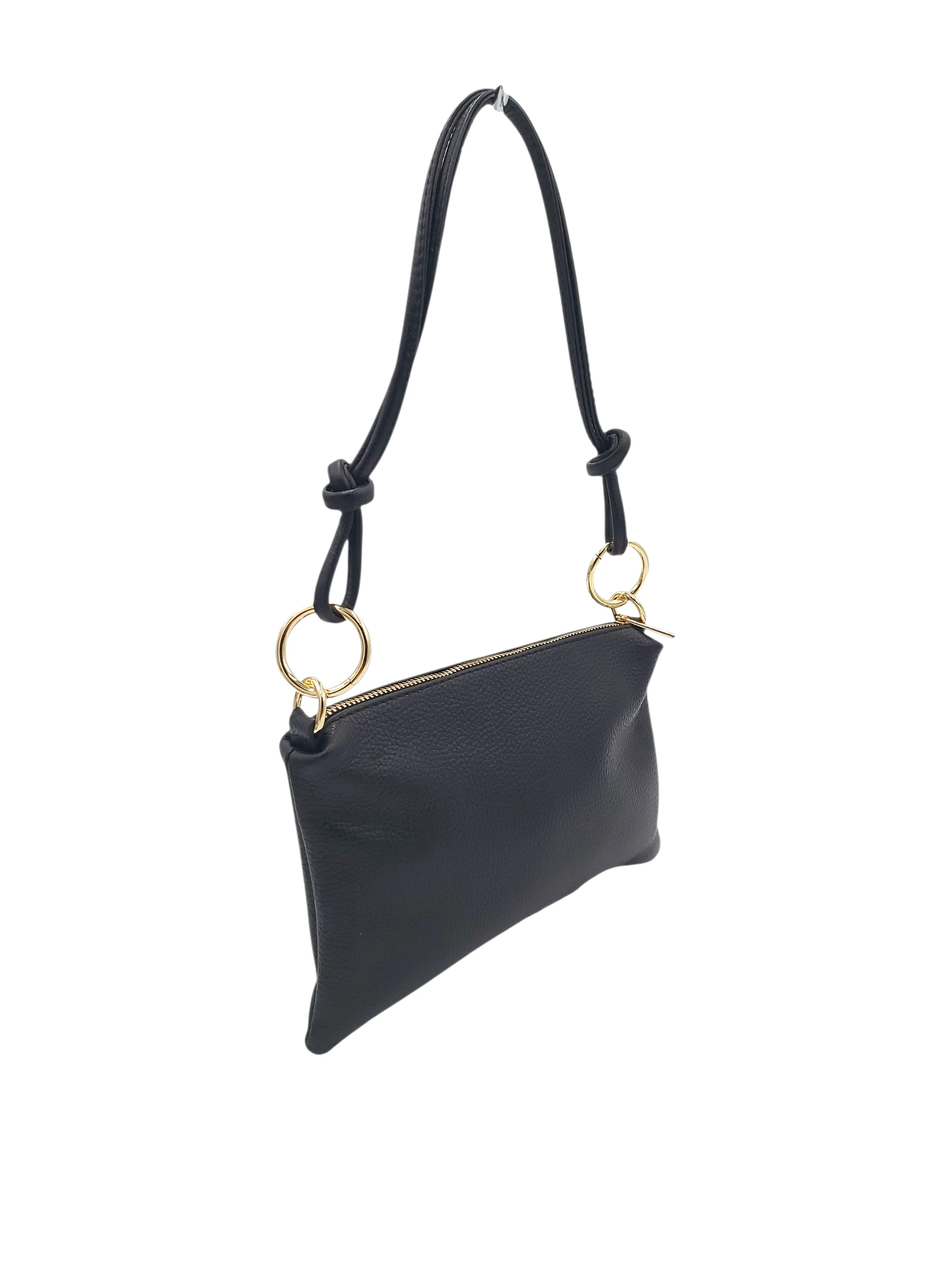 Torebka damska listonoszka czarna skóra naturalna kółko