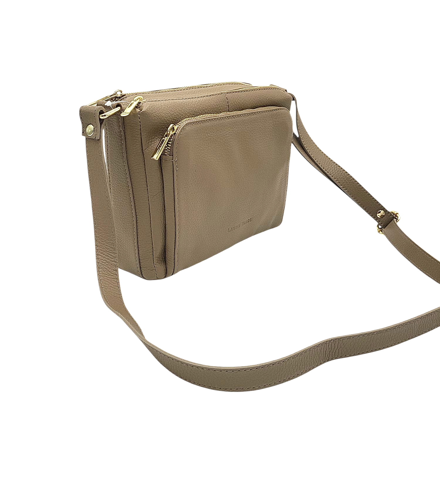 Torebka damska listonoszka trzy komory Laura Biaggi skóra beż taupe
