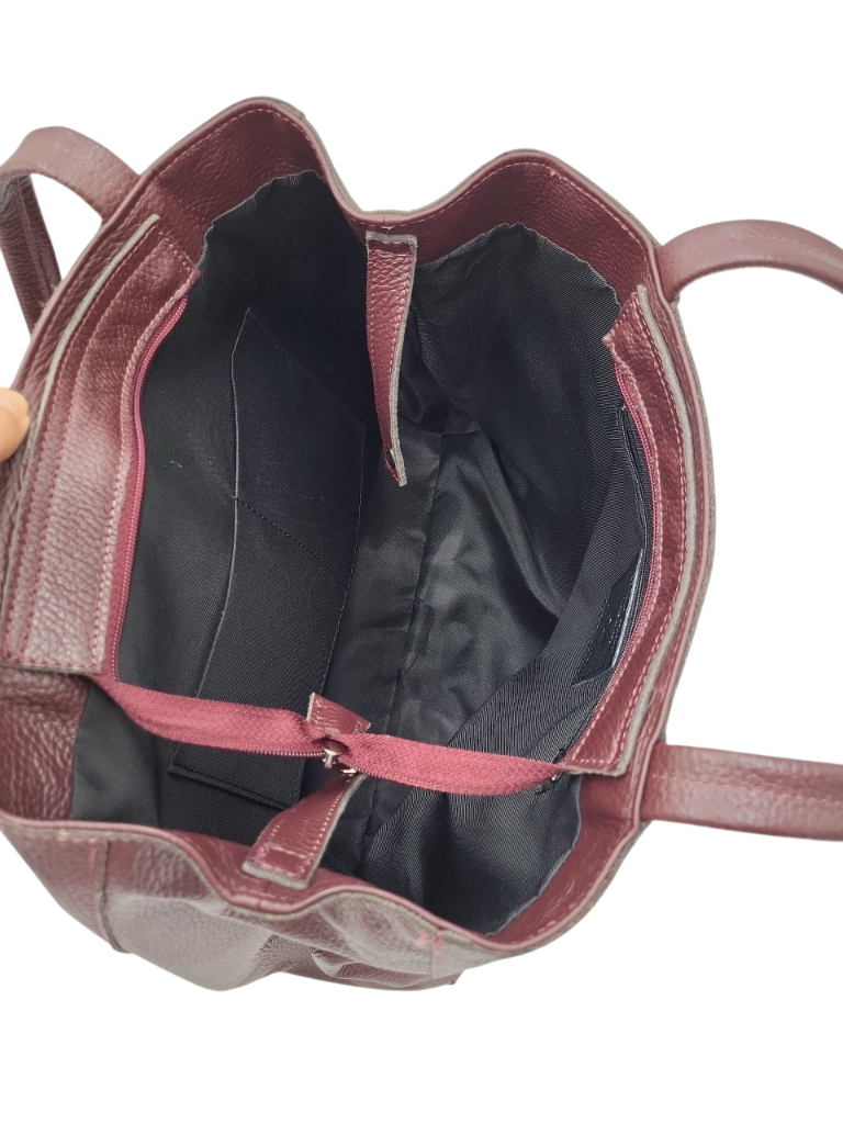 Torebka damska shopper Laura Biaggi wykonana z wysokiej jakości skóry naturalnej w eleganckim bordowym kolorze to idealny wybór dla każdej nowoczesnej kobiety. Dzięki pojemnemu wnętrzu pomieści wszystkie niezbędne akcesoria, co czyni ją funkcjonalnym i stylowym dodatkiem do codziennych stylizacji. Solidne wykończenie oraz dbałość o detale świadczą o klasie marki Laura Biaggi, a subtelny, a zarazem modny design sprawia, że torebka z pewnością przyciągnie uwagę. Dodatkowo wygodne rączki zapewniają komfort noszenia, a klasyczny kształt sprawia, że pasuje do wielu różnych okazj. Wybierz torebkę, która podkreśli Twój styl i osobowość.
