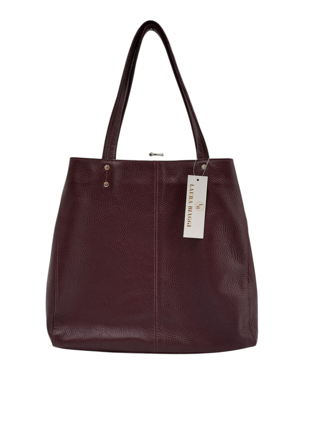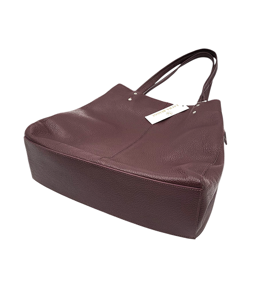 Torebka damska shopper Laura Biaggi skórzana burgund bordowa