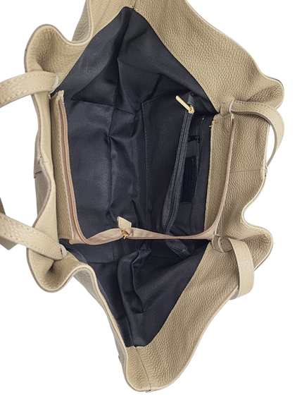 Torebka damska shopper naturalna skóra beżowa