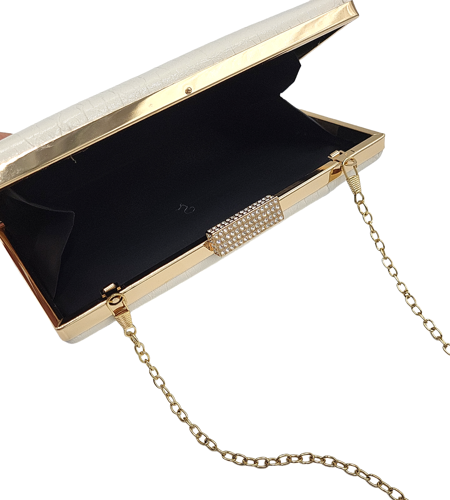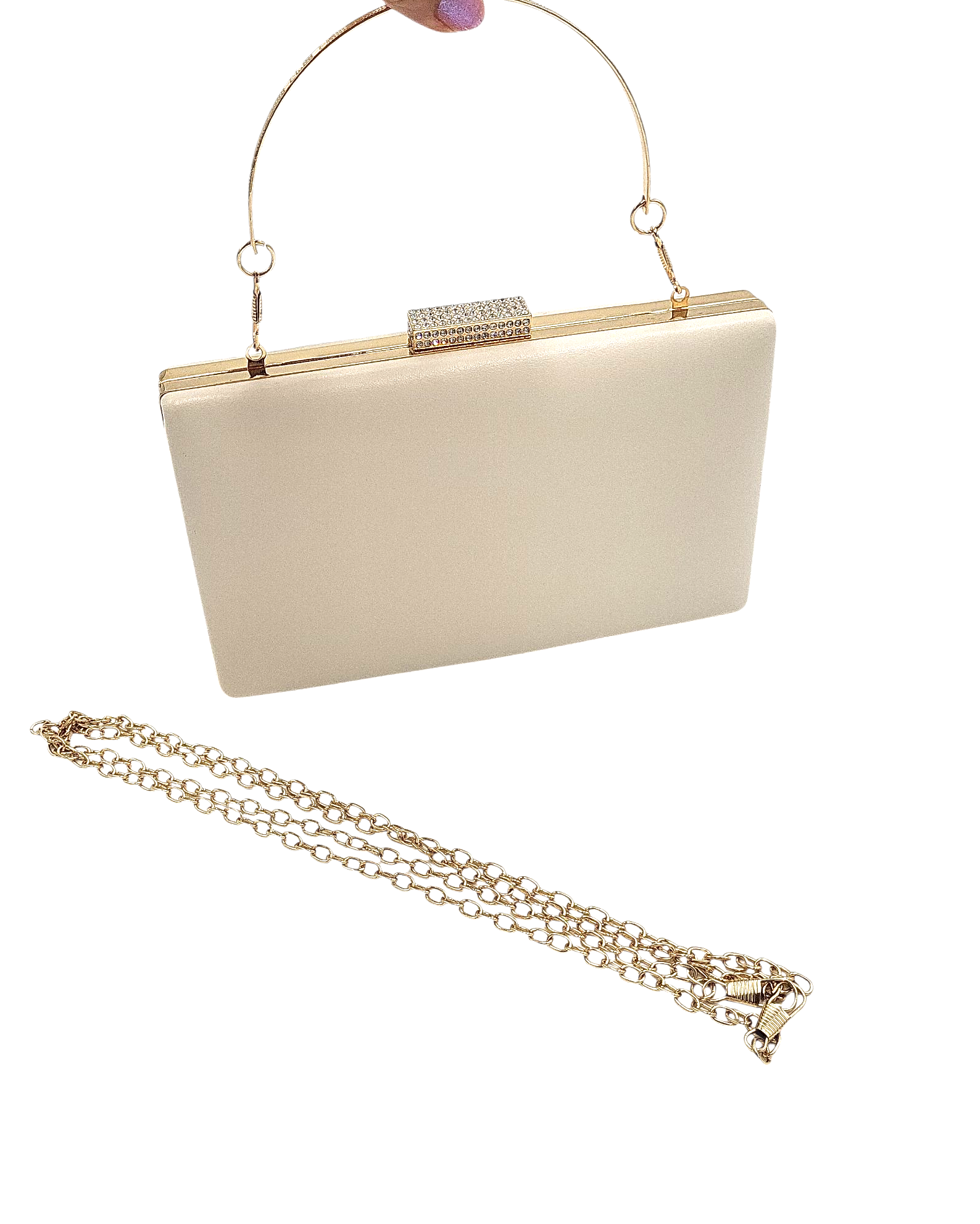 Torebka damska wizytowa puzderko beż ze złotym