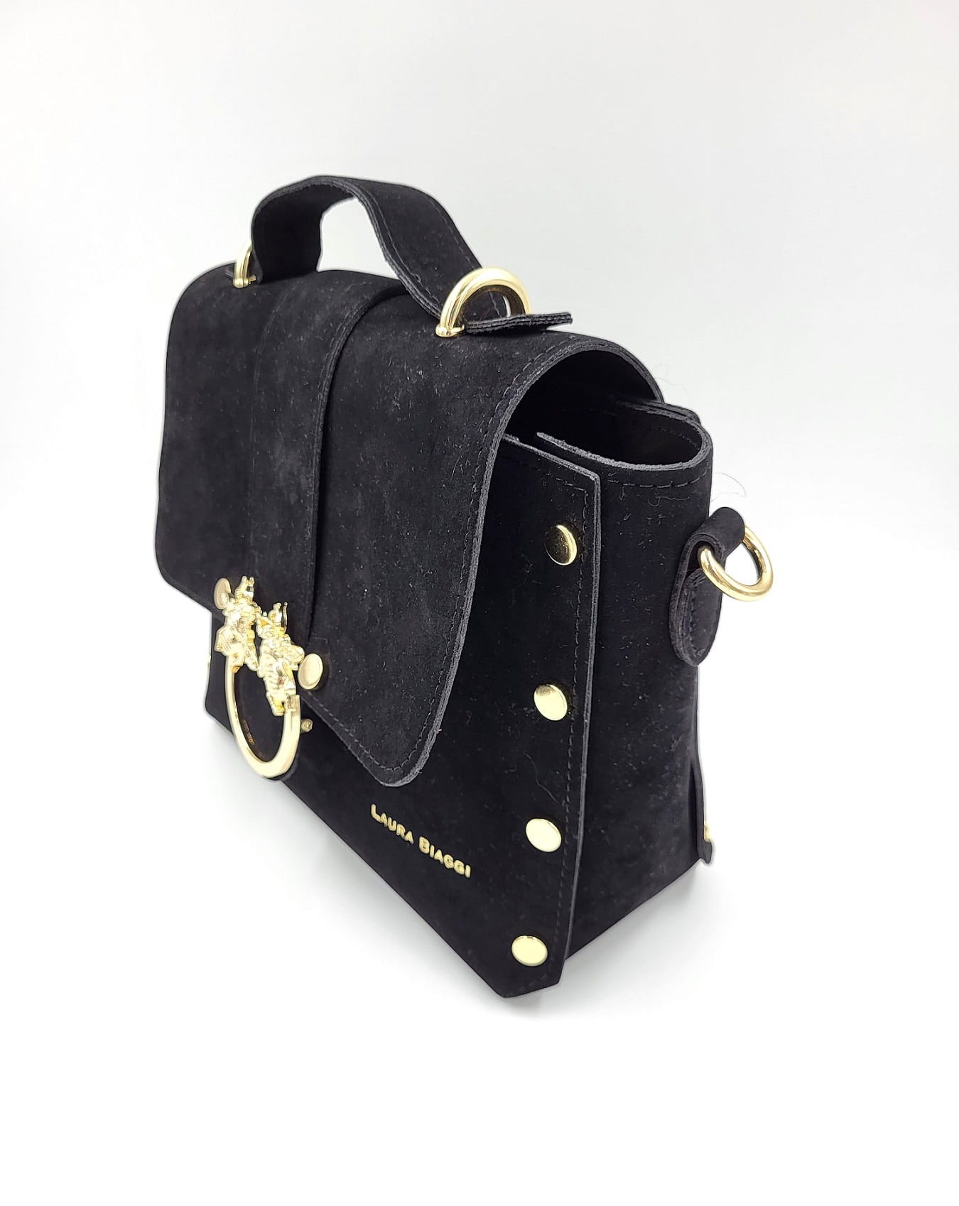 Torebka listonoszka kuferk LAURA BIAGGI czarna zamsz