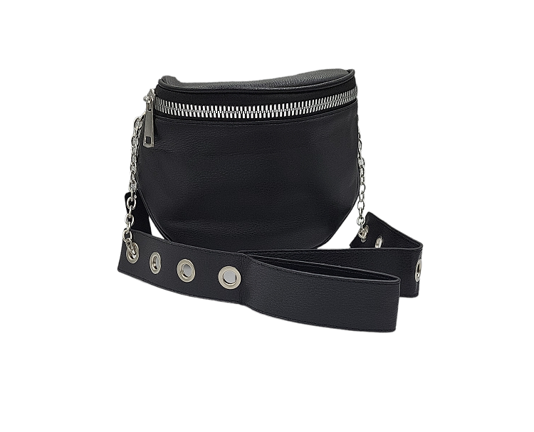 Przyciągający wzrok, modny i piękny model torebki w kolorze czarnym ze srebrnymi okuciami. Lekko usztywniona, ładnie utrzymuje kształt, nawet gdy jest pusta.